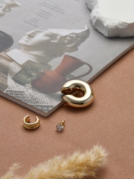 Откройте для себя очарование этих изысканных серьг и каффов, которые объединяют в себе стиль и утонченность. Набор из трёх украшений в золотистом цвете с эффектом бублика и стразы — идеальное решение для создания элегантного образа, который привлечёт внимание и подчеркнёт вашу индивидуальность. С длиной 8,5 см, эти серьги удобно сидят на ушах и подходят как для повседневной носки, так и для особых случаев. Стильный кафф без прокола позволяет наслаждаться модным акцентом без необходимости в пирсинге, а застёжка пусет гарантирует, что серьги будут надёжно держаться на месте. Модный минимализм: удачное сочетание простоты и изысканности делает серьги универсальными для любого стиля. Комфорт в использовании: легкость и удобство в носке позволяют вам не беспокоиться о часах, проведённых в этих украшениях. Элегантный блеск: золотистый цвет и блестящие вставки добавляют сияния и привлекательности вашему образу. Отличный выбор подарка: набор станет великолепным подарком для любимой мамы, подруги или дочери на любой праздник, будь то 8 Марта или День рождения. Лёгкость сочетания: благодаря своему стилю эти серьги легко комбинируются с различными нарядами и аксессуарами. С набором серьг и каффов вы подчеркнёте свою индивидуальность и будете уверены в своём безупречном стиле в любой ситуации. Позвольте себе сиять и удивлять окружающих с помощью этого великолепного украшения!