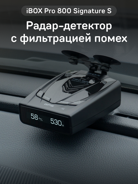 iBOX Pro 800 Signature S - радар-детектор с базой камер, оснащенный улучшенным сверхчувствительным модулем ADR Ultra для максимальной дальности обнаружения полицейских камер. Модуль ADR Ultra — уникальная разработка компании iBOX. Улучшенный сверхчувствительный модуль ADR Ultra, совместно с режимом Smart, значительно увеличивает потенциал радар-детектора в дальности обнаружения полицейских радаров, в т. ч. маломощных радаров при детектировании «в спину». Радиомодуль iBOX Pro 800 Signature S способен детектировать радары Робот, Стрелка, Кордон, Крис, Крис-П, Искра, Радис, Арена, Бинар, Беркут, Сокол, ВКС, Барьер-2М, ПКС-4 и Визир и др. Высокочувствительный лазерный модуль обеспечивает возможность обнаружения лазерных сигналов на 360 и позволяет обнаружить такие радары, как ПОЛИСКАН, АМАТА, ЛИСД, ЛИСД 2. В устройстве установлен радарный модуль второго поколения на базе высокопроизводительного процессора ST Microelectronics с технологией Signature Sensitivity Platform (SSP) увеличивающий чувствительность и дальность обнаружения. Фильтр X Signature автоматически выключает звуковые оповещения о радаре при силе сигнала ниже установленного значения. GPS-модуль с обновляемой базой данных камер 45-ти стран (Россия, СНГ: Узбекистан, Казахстан и др.), оповещает о «малошумных» камерах (Кордон, Кречет, Mesta, Рапира, Вокорд «Циклоп», RedSpeed, Скат, Робот, Multaradar, Одиссей), и «парных камерах» без радарного блока, вычисляющих среднюю скорость (Автоураган, Автодория, Сергек). Актуальная прошивка и база обновляется еженедельно и публикуется на сайте производителя. Внимание! В зонах глушения GPS возможны сбои: показания скорости и оповещения по базе камер могут быть некорректными. Причина — не в устройстве, а в подавлении сигналов. Режим SMART - чувствительность радар-детектора изменяются в зависимости от скорости автомобиля. Переход с режима «Город» в режим «Трасса» и наоборот происходит автоматически. Устройство обладает функцией «ФИЛЬТР СКОРОСТИ». С ее помощью фильтрация сигналов происходит в зависимости от текущей скорости автомобиля. Ваш радар-детектор будет игнорировать все поступающие сигналы, если скорость автомобиля ниже установленного значения. Функция Гейгер-эффект (9 уровней) дает графическое представление о силе излучения полицейского радара. Чем ближе радар, тем сильнее излучение и тем длиннее шкала, отображающая уровень сигнала. iBOX Pro 800 Signature S заранее предупреждает о таких типах контроля, как: Контроль автобусной полосы Контроль светофора Контроль средней скорости старт Контроль средней скорости финиш iBOX Pro 800 Signature S обладает ярким контрастным OLED дисплеем, который отлично читается с любого угла обзора. Дисплей имеет несколько уровней яркости и специальный режим автоматической регулировки яркости в зависимости от освещения. iBOX Pro 800 Signature S можно установить в автомобиле несколькими способами: На лобовое стекло с помощью крепления на присосках На торпедо автомобиля с помощью магнитного крепления На торпедо автомобиля с помощью нескользящего коврика Расширенная цифровая гарантия — 3 года. Необходимо зарегистрировать устройство на официальном сайте iBOX в течение 30 дней с даты получения. Нажмите на лого и название магазина, чтобы увидеть ассортимент устройств или собрать комплект.