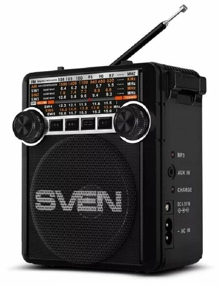 Радиоприемник SVEN SRP-355 - это компактное и функциональное устройство, которое станет незаменимым помощником в путешествиях, на природе или просто в домашней обстановке. SVEN SRP-355 выполнен в ярком красно-черном корпусе, который не только привлекает внимание, но и обеспечивает удобство использования. Благодаря компактным размерам и удобной ручке для переноски, радиоприемник легко транспортировать и хранить. Устройство оснащено аналоговой настройкой частоты, что позволяет принимать радио в диапазонах FM, AM и SW. Это обеспечивает широкий спектр радиостанций для прослушивания. SVEN SRP-355 оснащен одним динамиком мощностью 3 Вт RMS. Это обеспечивает чистый и громкий звук, который будет радовать вас в любых условиях. Радиоприемник поддерживает воспроизведение музыки с USB flash, microSD и SD карт памяти. Это позволяет слушать любимые композиции без необходимости подключения к другим устройствам. SVEN SRP-355 также оснащен телескопической поворотной антенной, что обеспечивает стабильное и качественное радиоприема. Устройство может работать от электросети, батареек или собственного аккумулятора. Это позволяет использовать радиоприемник в любом месте и в любое время. В целом, радиоприемник SVEN SRP-355 - это надежный, функциональный и стильный выбор для тех, кто ценит качество звука и удобство использования.
