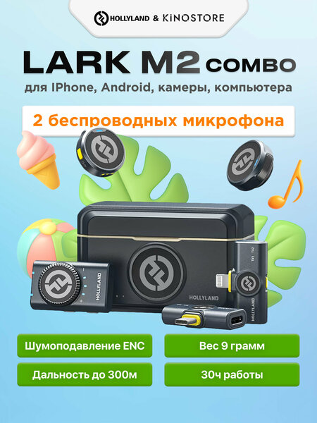 Радиосистема Hollyland Lark M2 Combo представляет собой конденсаторный микрофон с встроенным аккумулятором, обеспечивающий высокое качество звука и удобство использования. Lark M2 предлагает широкий диапазон возможностей подключения, включая mini Jack 3.5 мм TRS, Lightning и Type-C, что позволяет использовать радиосистему с различными устройствами, включая смартфоны, планшеты, камеры и рекордеры. Моно/стерео запись звука позволяет записывать как один, так и два голоса одновременно. Чувствительность микрофона составляет -37 дБ, что обеспечивает чистый и ясный звук даже при высоком уровне звукового давления. Радиосистема поддерживает передачу сигнала на расстоянии до 300 метров, что позволяет вести запись без потери качества звука. Управление радиосистемой осуществляется через приложение LarkSound, которое предлагает интуитивно понятный интерфейс для регулировки уровней шумоподавления. В комплект радиосистемы входят два передатчика, приемник Type-C, приемник Lightning, приемник для камеры/рекордера, зарядный кейс, аудиокабель min Jack TRS, зарядный кабель USB - Type-C, чехол, подвеска на шею, ветрозащита ворсовая и магнитная клипса. Радиосистема выполнена в черном цвете и имеет габариты 86 × 54 × 39 мм. Вес приемника составляет 14.8 г, а аккумулятора - 145 мАч. Время работы приемника составляет до 9 часов, а передатчика - до 10 часов. Радиосистема Hollyland Lark M2 Combo - это надежный и функциональный инструмент для записи качественного звука.