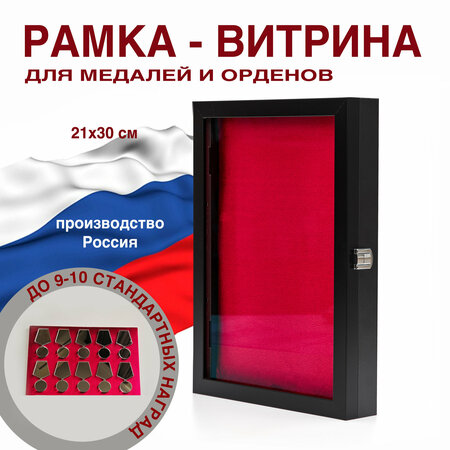 Рамка для медалей – объемная конструкция, предназначенная для аккуратного хранения и демонстрации наградных экспонатов. Витрина состоит из мягкого внутреннего планшета с бархатом, на жесткой основе и корпуса с прозрачным акриловым стеклом, за счет которого сохраняется хорошая видимость содержимого. Возможно поставить на полку, стол или повесить на стену в горизонтальном или вертикальном положении. Витрина для медалей, орденов, значков, фалеристики это идеальное решение для тех, кто желает с достоинством оформить награды деда, отца, мужа или свои личные героические достижения: