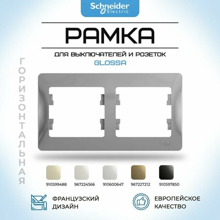 Рамка для розетки и выключателя горизонтальная Schneider Electric Glossa, 2 поста, алюминий