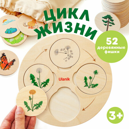 Рамка вкладыш Жизненный цикл развивающая деревянная игра для детей Ulanik