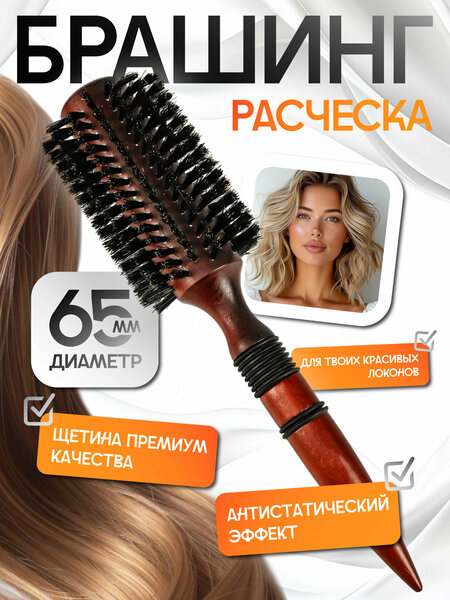 Твои волосы - визитная карточка твоей красоты и ухоженности. Изящные и здоровые пряди, всегда будут привлекать внимание! Именно поэтому мы предлагаем тебе массажную кргулую женскую расческу для укладки волос, которая станет незаменимым помощником в твоих ежедневных рутинах по уходу за головой. Эта расчёска брашинг с натуральной щетиной обеспечит нежный и мягкий уход за твоими волосами, гарантируя роскошный вид и удивительную укладку. Представь себе - массаж и укладка волос одновременно! Данный предмет подходит как для детей, так для женщин и мужчин. Волосы - это обрамление нашего лица, самая непосредственная и видимая часть нашей внешности. Именно поэтому так важно правильно ухаживать за ними, поэтому если вы ищете идеальное средство для ухода за своими волосами, то массажная расчёска для укладки волос - именно то, что вам нужно. Мы понимаем, что каждый человек уникален и имеет свои потребности. Будь вы мужчиной или женщиной, товар доставит только удовольствие во время укладки ваших прядей. Расческа для волос с эффектом антистатик подходит для любых волос. Массажная круглая расчёска с щетиной идеальна для профессиональной и самостоятельной укладки феном, челки, для объема волос у корней и создания кудрей, распутывания. Ее удобно использовать вместе с щипцами, для укладки волос, и любым стайлингом. Массажная расческа обладает всеми свойствами для спутанных, кудрявыми, ослабленных, тонких и толстых волос. Эргономичное строение позволяет расчесывать запутанные, прямые, кудрявые, гладкие, детские, взрослые, сухие, мокрые, мягкие, жесткие и волосы после мытья лучше, чем щетка с натуральной щетиной или брашинг керамический. Алюминиевые зубчики с оптимальным диаметром и закругленной головкой на конце не допускают сечения, не повреждают их структуру, не выдирают и не ломают их, а также обладают эффектом массажа и антистатика.