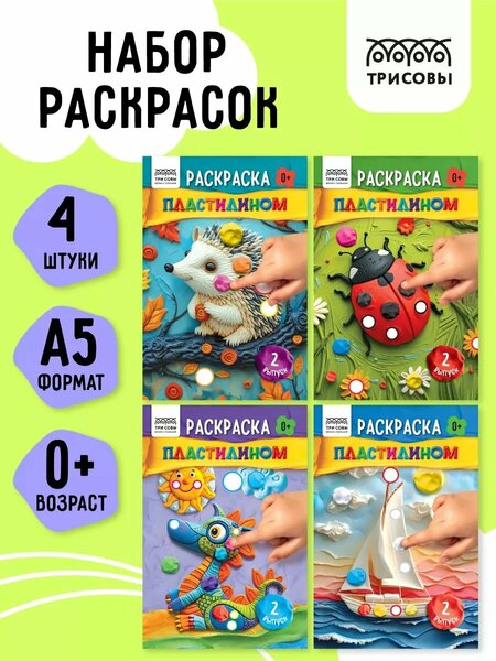 Комментарий:это просто прелесть! Ребенку скоро 3 года, ему очень понравилось лепить пластилин на картинки. Рисунки очень яркие, четкие, как будто тоже из пластилина. Очень интересно!