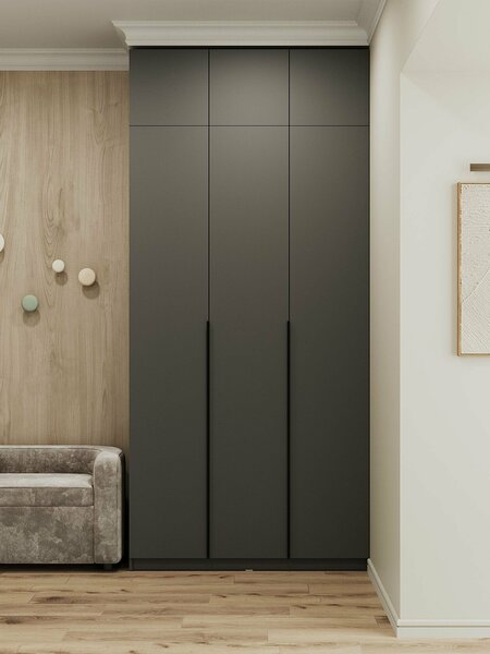 Распашной шкаф Сеул 3 двери организует удобное хранение всего необходимого в вашем гардеробе. Узкие вытянутые ручки не только обеспечивают легкое открывание, но и выполняют декоративную функцию, добавляя современный штрих дизайну. В комплектации с ящиками этот шкаф для одежды распашной идеально подходит для хранения различных предметов гардероба — от верхней одежды до белья и аксессуаров. Стандартное наполнение обеспечивает больше места для габаритных вещей. В комплектацию с антресолью входят (ВхШхГ):