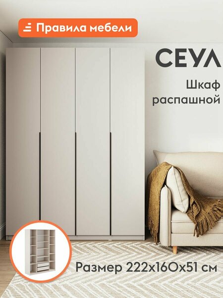 Распашной шкаф Сеул 4 двери — это вместительная модель, которая поможет легко организовать максимально удобную систему хранения. Вы можете выбрать один из двух вариантов наполнения: с просторной нишей по центру для больших вещей или с ящиками для белья и аксессуаров. В дизайне сделан акцент на простую геометрию, которую подчеркивают тонкие контрастные ручки, добавляя современности и стиля. В комплект мебели входят (ВхШхГ):