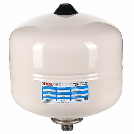 Мембранные баки VALTEC VT.A.R предназначены для поддержания требуемого рабочего давления, сглаживания колебаний давления, компенсации теплового расширения, гидравлических ударов и накопления запаса воды в системах холодного (в том числе питьевого) и горячего водоснабжения с температурой воды не более +70 ? С. Максимальное рабочее давление в системе - 10 бар. Заводское давление в газовой камере (преднастройка) - 4 бара. Корпус и опоры (ими оснащаются модели объемом от 35 л включительно) баков выполнены из углеродистой стали, покрыты эпоксидной эмалью белого цвета (RAL 9001), материал фланца - нержавеющая сталь марки AISI 304L, мембраны - EPDM. Преимущества : * Максимальная температура системы: 120°C; * Возможно использование в системе с антифризом на основе гликоля (до 50%); * Бак заполнен азотом для более длительного сохранения исходного давления; * Бак имеет полностью сварную конструкцию; * Фланец бака завальцован, что обеспечивает равномерную нагрузку на мембрану в месте соединения с корпусом и продлевает срок эксплуатации; * Нержавеющий фланец у баков; * Каждый расширительный бак прошел заводскую проверку; * Страна производства - Россия. Технические характеристики: Вес, кг 1.9 Высота, мм 263 Артикул VT. A. R.050008 Диаметр, мм 235 Максимальное рабочее давление, бар 10 Объем, л 8 Стандарт подводки, дюйм 3/4