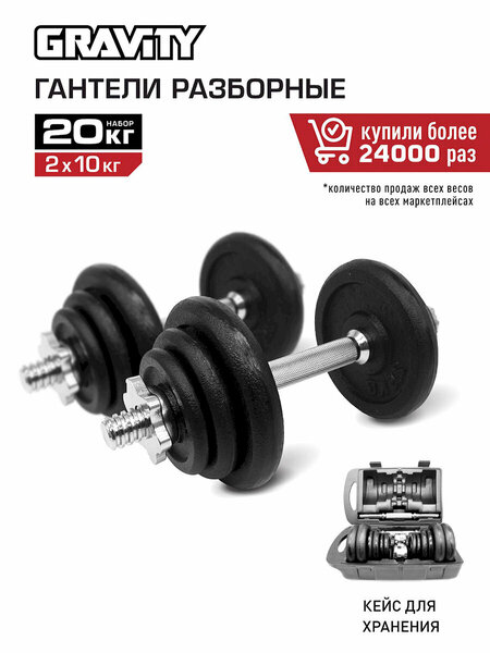 Разборные гантели Gravity, 20 кг, в кейсе, в наборе 2 шт по 10кг