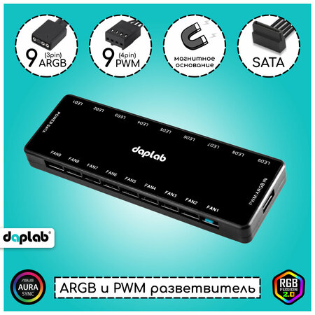 Многофункциональный разветвитель ARGB и PWM Hub от DAPLAB - управление освещением и вентиляторами в одном устройстве! Этот компактный, но мощный хаб от известного бренда DAPLAB предназначен для управления до 9 вентиляторами и ARGB освещением вашего компьютера, обеспечивая оптимальное решение для энтузиастов ПК, стремящихся к оптимизации охлаждения и эстетики системы. Основные характеристики: Количество подключаемых вентиляторов: до 9 штук. Тип подключения: 3-pin ARGB и 4-pin PWM. Питание: через SATA-разъем. Материал крепления: магнитное основание для простой и надежной установки. Входное напряжение: 12V. Максимальный ток: 7.4A для ARGB, 3.5A для PWM. Корпус: прочный пластик, защищающий электронные компоненты. Размеры: 144 мм (длина) x 48 мм (ширина) x 14 мм (высота). Преимущества использования: Простота установки: благодаря магнитному креплению и удобным разъемам, установка займет всего несколько минут. Улучшенное охлаждение: оптимизируйте воздушный поток внутри корпуса для лучшего охлаждения компонентов. Замечательная визуализация: добавьте яркие цвета и эффекты с помощью ARGB подсветки, управляемой через этот хаб. Идеально подходит для: Геймеров и профессионалов, желающих максимально контролировать систему охлаждения. Тех, кто хочет улучшить внешний вид своего ПК с помощью яркой подсветки. Получите контроль над каждым аспектом охлаждения и освещения вашей системы с многофункциональным разветвителем ARGB и PWM Hub от DAPLAB. Заказывайте сейчас и сделайте свой ПК более эффективным и стильным!
