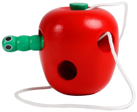Развивающая игра шнуровка "Яблочко с червячком" деревянная основа, для развития мелкой моторики, дидактическая игрушка для малышей по методике Монтессори