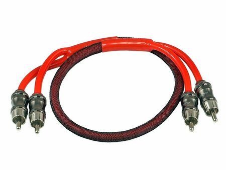 Межблочный RCA-кабель. 2 канала. Проводник — бескислородная медь (OFC). Витая пара. Тройная защита от помех и механических повреждений. Разборные никелированные коннекторы. Гибкая ПВХ-изоляция. Длина — 0,5 метра.