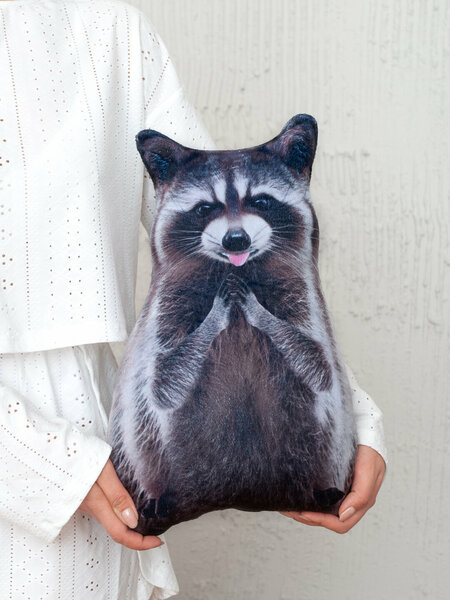 Реалистичная мягкая подушка-игрушка в виде енота - это не просто декоративный элемент, но и источник положительных эмоций. Подушка на диван станет отличным подарком для тех, кто хочет добавить немного уюта и тепла в свой интерьер. Она может стать отличным дополнением к интерьеру детской комнаты или гостиной. Материал подушки - мягкий и приятный на ощупь - велюр. Изображение нанесено долговечными чернилами, которые не потускнеют и не сотрутся после многочисленных стирок. Для того чтобы постирать подушку откройте потайную молнию и вытащите наполнитель. Подушка енот идеальный подарок для детей и взрослых. Размер подушки 38х26х11
