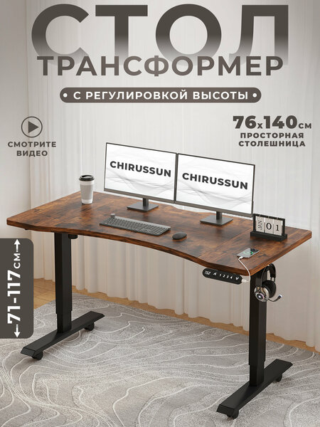 Компьютерный стол с регулировкой высоты CHIRUSSUN: Ваш идеальный рабочий партнер! Просторная и удобная столешница. С размерами 76 см в глубину и 140 см в ширину, этот стол предоставляет достаточно пространства для размещения вашего компьютера, документов и других необходимых принадлежностей. Работайте с комфортом, не беспокоясь о нехватке места! Умный контроллер для идеальной высоты. Интеллектуальный ручной контроллер позволяет легко регулировать высоту стола, обеспечивая плавный переход между сидячим и стоячим положением. С высокой скоростью и уровнем шума менее 50 дБ, вы можете настраивать стол, не отвлекаясь от работы. Прочная конструкция и продуманный дизайн. Массивная столешница устойчива к воде и износу, а двойная балка из прочного металла гарантирует надежность. Стол способен выдерживать нагрузку до 60 кг, что делает его идеальным для работы с тяжелыми устройствами или большим количеством документов. Кроме того, встроенные отверстия для сбора проводов помогут поддерживать порядок на вашем рабочем месте. Безопасность и защита. С технологией Anti-Collision вы можете быть уверены в своей безопасности. Встроенные датчики с высокой чувствительностью обнаруживают препятствия и автоматически опускают стол на 2 см, предотвращая возможные повреждения. Если возникнет ошибка, просто отключите питание на 20 секунд — и ваш стол автоматически перезагрузится! Удобство в использовании. С 4 программируемыми предустановками памяти вы сможете легко сохранить свои любимые настройки высоты. Просто нажмите и удерживайте цифровую клавишу до звукового сигнала — и ваш идеальный уровень будет всегда под рукой! Если у вас возникнут вопросы, не стесняйтесь обращаться к нам! Комплектация: пульт управление, блок питания, крепление для наушников