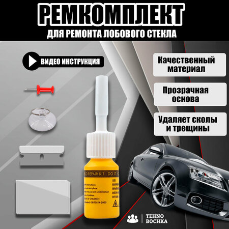 Комплект для ремонта автомобильных стекол восстанавливает видимость и останавливает распространение сколов и трещин на лобовом стекле . Состав выталкивает воздух из сколов , трещин и наполняет их прочным клеем полимерным , делая еще прочнее, чем раньше . Клей прозрачный затвердевает под действием УФ-излучения яркого солнечного света или УФ-лампы . Для достижения наилучших результатов используйте как можно скорее после повреждения и до того, как скол загрязнится водой или грязью . 3 главных причины купить ремкомплект Тehno Bochka жидкое стекло или по другому клей для ремонта лобового стекла машины : 1 . На ремонт вы потратите всего 20 минут своего времени ! 2 . Вы сами уберете одним ремкомплектом набором трещину отрезком 1 метр или 8 сколов 3 . Многоразовое использование , благодаря аппликатору на липучках и инжектору вы используете ремкомплект несколько раз. Какие сколы и трещины убирает рем комплект : 1 . Бычий глаз 2 . Вихревидный 3 . Комбинированный 4 . Звездочка 5. Трещина . Вы нас можете найти по запросам : ремонт лобового стекла ремонт для ремонта ремонт стекла ремонт стекла авто набор для ремонта лобового стекла набор для ремонта сколов комплект для ремонта лобового стекла набор для ремонта стекла автомобиля для ремонта лобового стекла ремкомплект для лобового стекла ремкомплект лобового стекла набор для удаления сколов на лобовом стекле набор для удаления трещин на лобовом стекле комплект для ремонта лобового стекла ремонт стекла авто удаление сколов стекла удаление трещин смола для ремонта авто комплект для ремонта лобового стекла ремонт стекла авто ремкомплект для ремонта стекла ремонт сколов и трещин ремкомплект лобового стекла ремкомплект автомобильные. Обратите внимание у нас представлено 3 комплекта : В 1 комплекте идет : клей полимерный белый 2 мл , шило, лезвия, инжектор 4х осевой , фиксатор , пленка аппликатор 5 шт , инструкция . Во втором комплекте идет : клей полимерный желтый 3 мл , шило , лезвия , вакуумные присоски 4 шт. , пленка аппликатор 3 шт , инструкция . В третьем комплекте идет: клей полимерный черный 3мл , шприц с дозатором , шило , 2 лезвия , площадка или пъедестал для заполнения полимера , скотч двусторонний 3м -3шт. , инструкция на русском языке . В четвертом наборе идет полимер 3 мл, инструкция по применению.