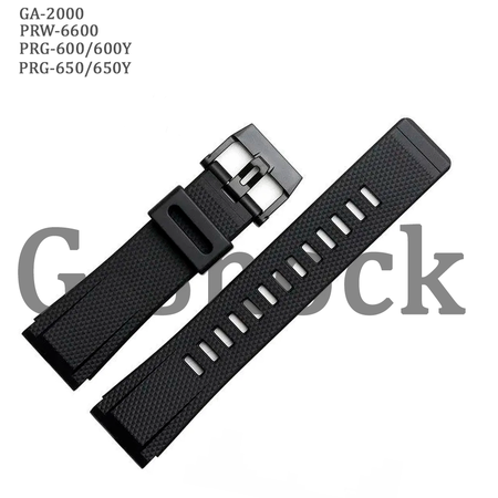 Ремешок для часов G-Shock GA-2000, PRG-600/600Y, PRW-6600, PRG-650/650Y черный - это высококачественный аксессуар, который обеспечивает комфорт и надежность при носке. Ремешок имеет черный цвет и черную пряжку, что придает ему стильный и современный вид. Характеристика: • Материал: каучук • Цвет ремешка: черный • Цвет пряжки : черная • Ширина крепления: 24 мм Ремешок подходит на все модели линейки : • GA-2000 • PRG-600/600Y • PRW-6600 • PRG-650/650Y Ремешок для часов G-Shock GA-2000, PRG-600/600Y, PRW-6600, PRG-650/650Y черный - это надежный и стильный аксессуар, который станет отличным дополнением к вашим часам и обеспечит комфорт при носке.