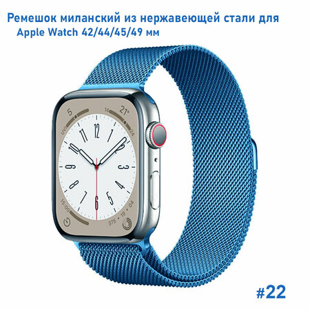 Ремешок для Apple Watch 42, 44, 45, 49 мм, миланcкая петля из нержавеющей стали на магните, лазурный