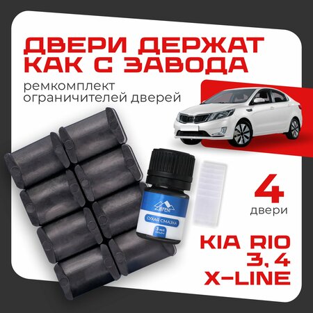 Ремкомплект ограничителей (фиксаторов) 4 дверей для Kia RIO (III-IV), X-Line 3, 4 поколения, Кузова: UB, QB, SC, FB, Г.в.: 2011-2022.