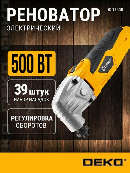 Реноватор DEKO DKOT500 - это универсальный инструмент для дома, сочетающий в себе функции таких электроприборов как лобзик, болгарка и шлифовальная машинка. В зависимости от используемой насадки, изделие может легко и точно резать под разным углом, вырезать отверстия, распиливать небольшие заготовки, шлифовать, полировать, а также зачищать различные поверхности. Наличие сумки облегчает транспортировку и хранение. Применение: - сухая шлифовка небольших поверхностей; - распилка древесины и древесных материалов, гипсокартона, пластика, цветных металлов, гвоздей и скоб; - очистка поверхностей, например, удаление клея, повторное окрашивание напольного покрытия и т. д. Технические характеристики: Напряжение/частота: 220-240 В/50 Гц Мощность: 500 Вт Число оборотов: 11000-23000 об/мин Угол колебаний: 3° Тип соединения: OIS Комплектация: 1 шт реноватор 6 шт пильные лезвия 2 шт скребок 1 шт шестигранный ключ 25 шт шлифлисты 4 шт насадка шлифовальная 1 шт шлифовальная подошва 2 шт угольные щетки 1 шт руководство по эксплуатации 1 шт сумка