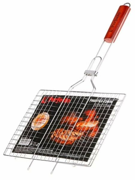 Решетка-гриль 320x250 мм нержавеющая сталь PERFECTO LINEA (47-101010) изготовлена из 100% нержавеющей стали, что делает ее безопасной для здоровья. Используется для запекания мяса, птицы, рыбы и овощей. Прочные стальные прутья от 2-х до 4-х мм толщиной делают решетку более долговечной, а металлические "усы", позволяют надежно разместить над источником тепла. Деревянная вставка на рукоятке, предохранят от ожогов, удобна в руке и имеет привлекательный вид. Надежное кольцо-фиксатор предотвращает открытие решетки в процессе приготовления.