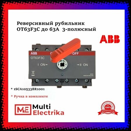 Реверсивный рубильник OT63F3C до 63А 3-полюсный для установки на DIN-рейку АВВ 1SCA105338R1001 c ручкой 1SCA108690R1001- 1шт.