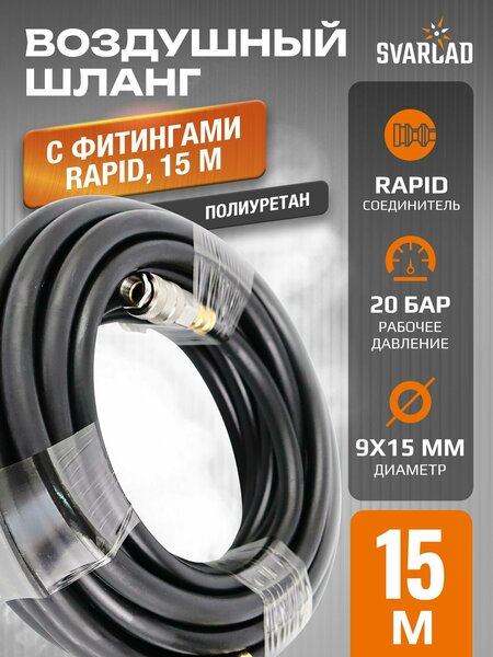 Воздушный шланг резиновый армированный с фитингами - 15 м Упаковка - термоусадочная пленка
