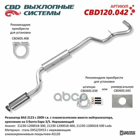 Резонатор Ваз 2123 С 2009 Г. в. С Пламегасителем Вместо Нейтрализатора, Крепление На 3 Болта Евро 3/5. Нержавеющий. Cbd120.042.
