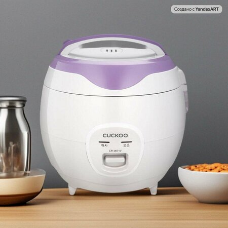 Электрическая маленькая рисоварка рассчитана на 6 персон. Произведено в Китае (официальный завод) для Южной Корее, поставка производится напрямую из Кореи! Важная особенность: Интерфейс рисоварки на корейском языке, но в комплекте идет полная инструкция на русском, вам нужно отсканировать qr код на вашем мобильном устройстве - будет легко со всем разобраться Конечное количество приготовленного риса зависит от его сорта. Для определения количества закладываемого риса воспользуйтесь мерным стаканчиком, который входит в комплект. Рис в мерный стаканчик следует насыпать до края, но не с горкой и не меньше. Объем чаши 1,08 литра. Мини CR-0671V является разновидностью профессионального кухонного оборудования, предназначенного для приготовления любых сортов риса. Два режима работы: приготовление при температуре 100 С и подогрев готового риса при температуре 60-80 С. Процесс приготовления риса занимает около 30 минут (после того как включится режим подогрева необходимо подождать 15 минут для того, чтобы дошел рис, далее можно открывать крышку) после чего оборудование автоматически переходит в режим подогрева. Технология 3D-нагрева: для равномерного приготовления риса, она включает четырехсторонний нагрев, который эффективно готовит и сохраняет рис теплым. Держите кашеварку в чистоте и свежей на вкус благодаря съемной внутренней чаше с антипригарным покрытием, съемной внутренней крышке и дополнительному дренажному поддону. Имеет функцию термоса. Также имеется безопасный паровой клапан позволяющий приготовленному рису оставаться пышным и вкусный, отвод избыточного водяного пара, образующийся в результате приготовления будет накапливаться в специальном контейнере, чтобы рис не стал кашеобразным и водянистым. Характеристики: Напряжение - 220 В. Потребляемая мощность - 500 Вт. Управление – Механическое Материал корпуса - Металл / Пластик. Объем стакана/чаши - 1000 мл. Максимум порций – 6. нагрева - Термический (ТЭН). Таймер –нет. Габариты товара (Ш*В*Д) - 262*279*259 мм.