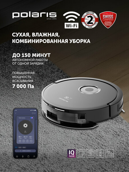 Достоинства:Умный, старательный, красивый Недостатки:Пока не нашла Комментарий:Мой первый робот-пылесос, назвала Валерой 😁 Давно хотела себе такого помощника, так как ненавижу пылесосить. Рассматривала аналоги известного китайского бренда, но по мнению многих знакомых, их пылесосы не вывозят качественную уборку и в общем и целом сильно тупят. Увидела пылесос Поларис у сестры, мне понравилось как он работает. Впечатлило как ловко перепрыгивает препятствия в виде порогов и высоких ковров. Заказала себе модель поновее и пока пребываю в восторге. Подключение в приложении IQ Home и к Алисе произошло легко, чуть загуглить пришлось, но в целом не напрягло. На первую уборку настроила Авто чтобы запомнил карту, ездил часа полтора и не пропустил ни одного угла, также много ездил по диагонали. Теперь запускаю в случайном режиме. Нравится что можно регулировать мощность всасывания. Если не хочу чтобы заезжал в какую-то комнату, просто закрываю в ней дверь. Об мебель не бьется (есть и темная и светлая), все видит. Иногда быкует на плинтус на кухне, но там плинтус немного под наклоном уложен. Застрял только один раз в поддоне для обуви, но прежде чем устраивать кипиш, долго пытался выбраться из него самостоятельно. Волос много наматывается конечно на щетку, но она снимается и легко чистится. Базу находит без проблем, просто нужно её правильно устанавливать, как написано в инструкции. Все запасные детали, как заявлено в описании были в комплекте. Влажную уборку еще не пробовала, да и она без особой надобности, так как главная задача у него собрать пыль и мелкий мусор. Все остальное делаю сама. Всем сомневающимся и пребывающим в муках выбора, советую данный пылесос и эту модель.