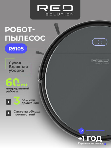 Робот-пылесос RED SOLUTION R6105 автоматически выполняет сухую и влажную уборку. Благодаря корпусу высотой всего в 7 см он без труда собирает пыль и сор в труднодоступных местах под шкафами, диванами и другой мебелью и протирает полы. Непрерывная работа до 60 минут Литий-ионный аккумулятор емкостью 1500 мА·ч позволяет прибору работать без подзарядки 60 минут и полностью заряжается за 4,5 часа. Для сухой и влажной уборки: Вращающиеся боковые щетки выходят за диаметр корпуса и легко захватывают мелкий мусор в углах и вдоль плинтусов. Они очищают поверхность от пыли, волос и шерсти домашних животных. Насадка из микрофибры создана для влажной уборки твердых половых поверхностей. Чтобы протереть полы, смочите насадку и закрепите ее на корпусе. Робот-пылесос протрет кафель, ламинат или линолеум. 4 режима работы: -FOCUS: Режим уборки фиксированной области предназначен для очистки особо загрязненного места. Робот будет двигаться по спирали, постепенно расширяя зону уборки. -EDGE: Прибор движется вдоль стен и препятствий, очищая помещение по периметру. -ZIG-ZAG: Режим зигзага создан для тщательной уборки просторных помещений. -Автоматический режим. Пылесос самостоятельно выстраивает маршрут и последовательно очищает всю площадь. Двойной фильтр Выходящий воздух пропускается через микрофильтр и фильтр тонкой очистки EPA. Такая система задерживает мельчайшие частицы пыли, бактерии и аллергены. 7 датчиков препятствий Робот-пылесос ориентируется в помещениях любой планировки при помощи 7 датчиков определения препятствий. С помощью них он распознает стены, мебель и другие преграды на пути.