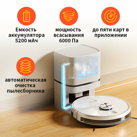 Благодаря чистящей основе он отлично собирает пыль, выполняет сухую и влажную уборку. Оснащен лидаром LDS последнего поколения и высокопроизводительными двигателями. Таким образом, это может лучше помочь вам содержать ваши полы в чистоте. сухое всасывание Начните сухую уборку пылесосом, заменив пылесборник (600 мл) в нижней части машины. Во время уборки можно установить 4 уровня всасывания, до 6000 Па. Подходит для разных размеров мусор。Тихий режим (волосы, пыль и т. д.) для длительной тихой уборки с минимальным энергопотреблением. Обычный режим идеален для ежедневной уборки (кошачий корм, наполнитель, крошки от печенья и т. д.), А режимы Power и Max отлично подходят для глубокой очистки. влажная уборка Начните влажную уборку, заменив резервуар для воды (350 мл) в нижней части. Вы можете отрегулировать поток воды в баке (3 уровня) в зависимости от типа пола или загрязнения. потребление батареи будет зависеть от напольного покрытия и размера помещения. Одной полной зарядки достаточно для обслуживания площади в 250 квадратных метров. Батарея Емкость аккумулятора составляет 5200 мАч. Срок службы батареи до 150 часов. Если батарея разрядилась, устройство возвращается на зарядную станцию, где возобновляет уборку сразу после зарядки. Главной особенностью является то, что он оснащен пылесборником объемом 2,8 л. Может автоматически убирать мусор в пылесборнике. Внутри зарядной базы находится насос, который высасывает собранные отходы из контейнера гаджета и складывает их в специальный мешок объемом 2,8 л (в поставлять 5 мешка). Одного мешка хватает примерно на месяц работы. Оснащен лидаром LDS четвертого поколения, процесс сканирования и картографирования окружающего пространства становится более точным. Установление оптимального маршрута уборки сокращает время уборки и экономит заряд батареи. Удаленное управление мобильным приложением В приложении пользователи могут бронировать уборку,Настройте план уборки (например, назовите комнату, порядок и частоту уборки, режим сухой уборки или влажной уборки и т. д.). Установите запретные зоны виртуальной стены, выберите определенные области для уборки, отслеживайте движение пылесоса в режиме реального времени и т. д. Вы можете щелкнуть в любом месте, где хотите отсканировать. Устройство поддерживает хранение до 5 карт: эта функция очень полезна для многоэтажных домов. Управление голосом Алиса, Google Home и Alexa. Вы можете управлять различными голосовыми командами, такими как начать уборку, остановить уборку, вернуться к зарядке. Гаджет может преодолевать препятствия до 2 см и обнаруживать посторонние предметы на своем пути. Сертификат технического качества: EAC(RU) CE CB ROHS.