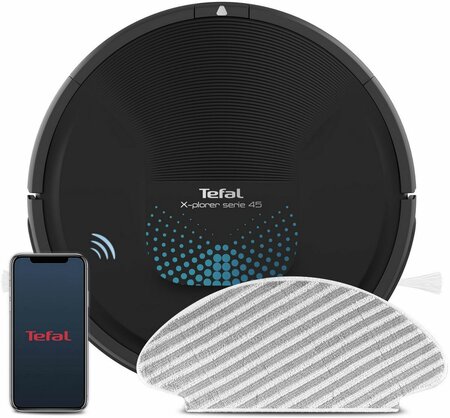 Робот-пылесос Tefal X-plorer Serie 45 - это удобное решение для уборки во всем доме. Автоматический робот-пылесос создан, чтобы сделать убору легче и удобнее: он имеет передовую технологию для тщательной уборки 4 в 1, две боковые щетки для уборки в углах и труднодоступных местах, турбощетку Animal Turbo Brush для уборки после домашних животных, электронный мотор, обеспечивающий высокую мощность всасывания, а также систему Aqua Power System, которая позволяет одновременно пылесосить и мыть полы. Усовершенствованный гироскоп и инфракрасные сенсоры обеспечивают высокоточную навигацию для эффективной уборки. В дополнение пылесос управляется с помощью бесплатного приложения с поддержкой голосового ассистента (Google Assistant, Amazon Alexa). Долговечный аккумулятор позволяет за один полный заряд убрать до 120 квадратных метров площади. Дополняет весь набор фильтр HEPA и насадка Allergy Electrostatic Mop, которые в совокупности обеспечивают здоровый чистый воздух в вашем доме, благодаря чему пылесос идеально подходит для людей, страдающих от аллергии.