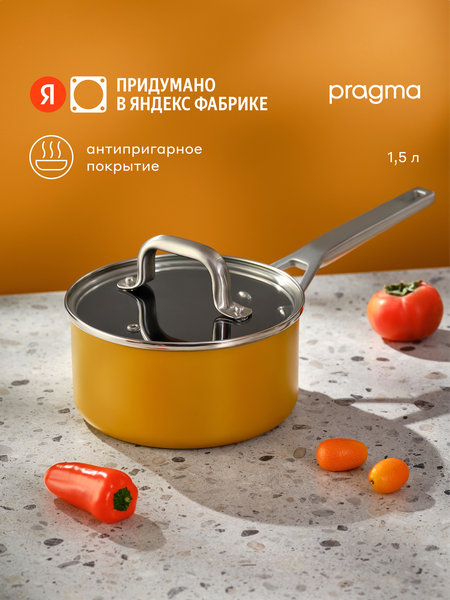 Pragma — это бренд эстетичных и функциональных решений для дома, придуманный в Яндекс Фабрике. Ковш Pragma Robuk сделан из лёгкого и прочного алюминия. Двухслойное антипригарное покрытие PFLUON не выделяет вредных веществ при нагревании. В ковше можно кипятить воду и молоко, подогревать и варить продукты, готовить соусы и горячие десерты. Специальное покрытие защищает от пригорания. Крепкая литая ручка из нержавеющей стали прикреплена заклёпками. Она не перегревается во время готовки, тем не менее рекомендуем использовать прихватку. В комплекте — крышка из термостойкого стекла. Она не боится высоких температур и выводит пар через пароотвод. Ковши, кастрюли и сковороды линейки Robuk е сть в чёрном и горчичном цветах, их можно подобрать под интерьер кухни и сочетать между собой. Удобный и практичный ковш Pragma Robuk подходит для индукционной и других типов плит. Его можно мыть в посудомоечной машине: индукционный диск не испортится во время мытья.