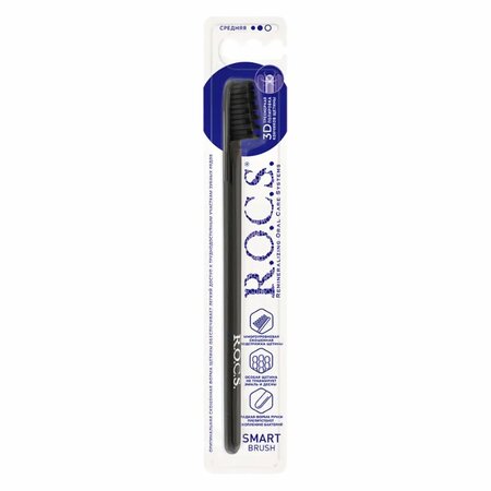 Зубная щетка R.O.C.S. "Модельная" разработана при участии стоматологов. Нетрадиционная скошенная подстрижка щетины обеспечивает: Бережный уход за деснами; Высокое качество очистки труднодоступных участков зубного ряда; Легкий доступ к дальним зубам. Тонкая ручка предотвращает излишнее давление при чистке. Высококачественная щетина: закругленные и отполированные на концах текстурированные щетинки обеспечивают быстрое и интенсивное очищение благодаря увеличенной очищающей поверхности и особенности аквадинамики волокна.