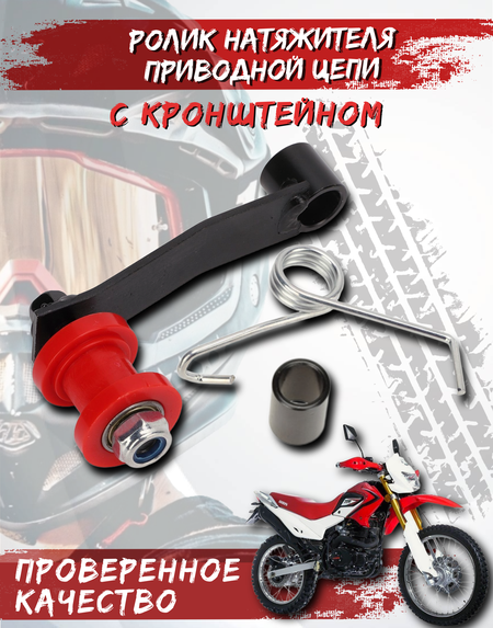 Ролик натяжителя цепи привода ТТР250R с кронштейном - 1 шт. Размеры - см. фото Длина запчасти - 135 мм. Ширина запчасти - 97 мм. Этот ролик натяжителя выполняет важную функцию в системе привода мопеда. Он обеспечивает правильное натяжение цепи, что гарантирует плавную передачу движения и увеличивает срок службы цепи на питбайке. Успокоитель цепи питбайк, который представлен в данной модели, поможет избежать лишних вибраций и шума при движении. Ролик для натяжения цепи также обеспечивает дополнительную защиту от износа, что особенно важно для регулярного обслуживания приводов мопедов. Этот ролик для квадроцикла отличается высоким качеством материалов и прочной конструкцией. Благодаря своим характеристикам он идеально подходит для замены или улучшения существующего ролика на цепи привода ТТР250R. В комплекте поставляется с кронштейном, что делает процесс установки быстрым и удобным. Выбирая ролик натяжителя цепи на питбайк, обратите внимание на эту модель - она обеспечит надежность и долговечность вашему приводу. Подойдет на модели мототехники: ТТР250R , Mikilon , Motoland , Yamaha , Honda , Chang-Jiang , Suzuki , Puma Falcon , BRZ , Keeway , Kawasaki , Aprilia , Pitster , KTM , Baltmotors , Suzuki и на многие другие.