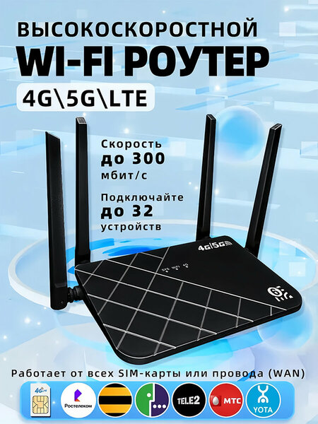 Роутер LTE CPE с SIM-картой — решение для стабильного интернета на даче или в квартире. Подключение через Ethernet, беспроводное соединение или SIM-карту — для максимального удобства. Wi-Fi стандарт IEEE 802.11b/g/n обеспечивает стабильную работу на частоте 2,4 ГГц с максимальной скоростью до 300 Мбит/с. Этот роутер поддерживает 4 антенны для оптимального сигнала и стабильной работы на удалении. Особенности: Подключение через SIM-карту, Ethernet или беспроводное соединение Мощность передатчика 5 дБ Максимальная скорость Wi-Fi 300 Мбит/с на частоте 2,4 ГГц Совместимость с 4G LTE для стабильного интернета Удобное управление через WEB-интерфейс Бесшумный дизайн без вентиляторов Идеально подходит для домашнего использования, дачи и офиса Комплектация: Роутер LTE CPE Ethernet кабель Зарядное устройство Инструкция Коробка Дополнительные характеристики: Преобразует 4G в WiFi, обеспечивая стабильный интернет в любом уголке Простой и удобный интерфейс для настройки Внимание! Сим-карта в комплект не входит.
