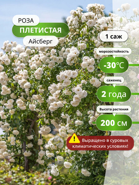 {"widgets":{"@card/UniversalPromoBadge":{"/content/page/fancyPage/universalPromoBadge":{"wrapperProps":{"margins":{"bottom":"3"}},"initialTime":1759635890452,"offerComposeId":"1398658548"}}},"meta":{"/content/page/fancyPage/universalPromoBadge":{"name":"@card/UniversalPromoBadge"}},"collections":{"productServiceSnippets":{"1398658548":{"productSnippet":{"type":"MODEL_CARD_LAYOUT","productPayload":{"title":{"value":"Роза плетистая \"Айсберг\", многолетняя, морозостойкая, белая, 300 см, 1"},"badges":{},"wishlistButton":{"mskuId":4647970007,"businessId":175397823,"modelId":1398658548,"oskuId":103670343304},"rating":{"reviewsCount":8,"ratingCountStats":{"cnt3":0,"cnt4":1,"cnt2":2,"cnt1":0,"cnt5":20},"ratingValue":4.7,"ratingCount":23},"gallery":{"galleryType":"MIXED","mediaItems":[{"type":"IMAGE","picture":{"height":1200,"width":900,"title":"Роза плетистая \"Айсберг\", многолетняя, морозостойкая, белая, 300 см, 1","baseUrl":"https://avatars.mds.yandex.net/get-mpic/14367910/2a00000196ee16a5e71b5fbe933aabfb42b6/"}},{"type":"IMAGE","picture":{"height":1200,"width":900,"title":"Роза плетистая \"Айсберг\", многолетняя, морозостойкая, белая, 300 см, 1","baseUrl":"https://avatars.mds.yandex.net/get-mpic/16115889/2a00000196ee16a5e5f78a217cbfb96417cc/"}},{"type":"IMAGE","picture":{"height":1200,"width":900,"title":"Роза плетистая \"Айсберг\", многолетняя, морозостойкая, белая, 300 см, 1","baseUrl":"https://avatars.mds.yandex.net/get-mpic/15394128/2a00000196ee16a5e623c993b3ed5d2aa0f1/"}},{"type":"IMAGE","picture":{"height":1200,"width":900,"title":"Роза плетистая \"Айсберг\", многолетняя, морозостойкая, белая, 300 см, 1","baseUrl":"https://avatars.mds.yandex.net/get-mpic/12552638/2a00000196ee16a5e9a9f3fa59d4ad4bcf6a/"}},{"type":"IMAGE","picture":{"height":1200,"width":900,"title":"Роза плетистая \"Айсберг\", многолетняя, морозостойкая, белая, 300 см, 1","baseUrl":"https://avatars.mds.yandex.net/get-mpic/15257343/2a00000196e8f342161501401b1bf76ad586/"}}]},"snippetStyle":"NORMAL"},"baobabPayload":{"marketSku":"4647970007","type":"offer","isUltima":false,"modelId":1398658548,"snippet_type":"product","wareId":"out-of-stock","oskuId":103670343304,"hid":60330576,"isExpress":false,"vendorId":15728405}}}}}}