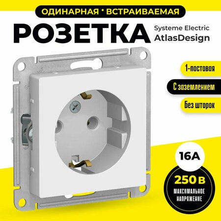 Розетка 1гн с З/К с/у белый механизм 16А AtlasDesign Systeme Electric