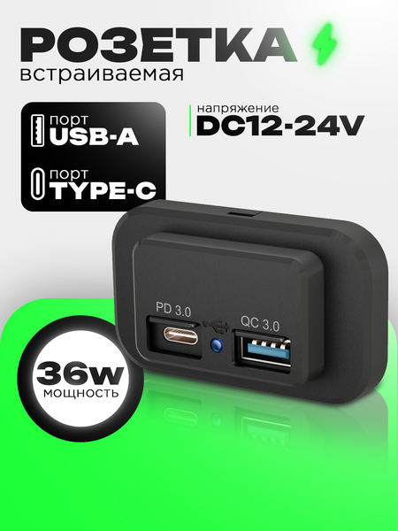 Встраиваемая розетка USB 36W 1-1 Type C - это идеальное решение для тех, кто ищет надежный и удобный способ зарядки своих устройств в автомобиле, квадроцикле, яхте или лодке. Эта розетка подключается к бортовой сети 12/24 В и имеет общую мощность 36 Вт. Она позволяет заряжать до двух устройств одновременно, что очень удобно для тех, кому нужно быстро пополнить заряд своих гаджетов во время поездки. Розетка USB 36W 1-1 Type C также имеет несколько портов зарядки, что позволяет заряжать различные устройства, такие как смартфоны, планшеты, ноутбуки и другие гаджеты. Кроме того, она имеет защитные колпачки, которые предотвращают попадание пыли и грязи внутрь розетки. Эта розетка USB 36W 1-1 Type C была разработана специально для тех, кто занимается установкой автомобильных аксессуаров и аксессуаров для лодок. Она является официальной продукцией от производителя и поставляется напрямую с завода-изготовителя. Таким образом, если вы ищете надежную розетку USB для своего автомобиля, квадроцикла, яхты или лодки, то Розетка USB 36W 1-1 Type C от нашего бренда - это отличный выбор. Она имеет высокую мощность, несколько портов зарядки и защитные колпачки. Благодаря своей универсальности и надежности, она станет незаменимым аксессуаром для любого автолюбителя.