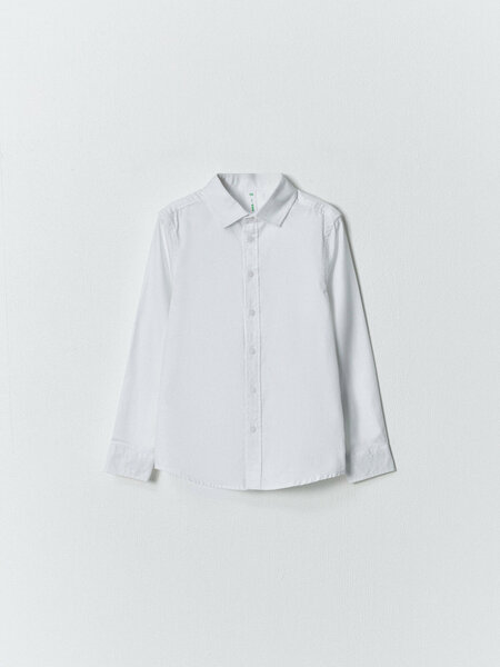 Белая рубашка для мальчика из школьной коллекции бренда SELA. Модель выполнена из хлопковой ткани добби, которая позволяет коже дышать и не вызывает раздражения, а также имеет текстуру, которая добавляет интересный визуальный эффект и делает рубашку более стильной. Прямой крой подчеркнет стройность и элегантность мальчика, а длинные рукава защитят руки от холода или солнца. Манжеты на пуговицах и фронтальная застежка на пуговицы обеспечивают надежную фиксацию и комфортную посадку. Отложной воротник придает рубашке более формальный вид и позволяет использовать ее на различных мероприятиях. Благодаря закругленному подолу рубашку можно носить как заправленную в брюки, так и свободно поверх них, что позволяет создавать различные стилевые образы. Хлопковая рубашка Regular fit идеально подойдет для повседневного использования в школе благодаря своей классической форме и простому, но стильному дизайну. Школьная форма от SELA — это идеальное сочетание элегантности, удобства и практичности. Бренд предлагает широкий ассортимент моделей для девочек и мальчиков, отвечающих всем требованиям современных школ. На ребенке представлен размер 140.