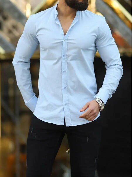 Рубашка с длинным рукавом и воротником-стойкой от бренда SKOS – это идеальный выбор для мужчин, ищущих комфорт и стиль в одном. Эта рубашка изготовлена из хлопкового сатина, за счет чего обладает легким, дорогим блеском, что выделяет ее на фоне обычных изделий из 100% хлопка. Гладкая и приятная к телу ткань, отличается плотностью и долговечностью, хорошо пропускает воздух, отлично подходит на каждый день. Эластан в составе добавляет прочности и уменьшает сминаемость, способствует более легкой глажке и обеспечивает и удобство при носке. В хлопковой сорочке на пуговицах будет комфортно в любую погоду. Базовая рубашка нашего производства в Турци идеально впишется в деловой стиль. Классическая рубашка молодежная должна быть удобной и износоустойчивой. Приталенная мужская рубашка и без воротника - одна из самых трендовых позиций 2024 года мужской моды, она подходит для офисной среды и школьной формы и праздничных мероприятий (вечерняя мода) . В наличии большие размеры. Тип ростовки предназначен для высоких людей, а гладкая фактура материала обеспечивает элегантный внешний вид. Этот мужской предмет одежды является отличным выбором для тех, кто ценит качество и стиль. Легкая рубаха приталенного кроя станет базовой вещью для ежедневной носки.