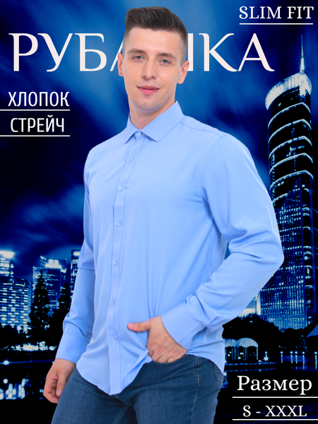 Голубая мужская рубашка (стрейч) это идеальное сочетание стиля, элегантности и комфорта. Мужская голубая рубашка неотъемлемый предмет гардероба и является элегантной частью мужского стиля. Рубашка мужская голубая (стрейч) подойдет во всех случаях жизни и в любой ситуации. Приталенная голубая мужская рубашка с длинным рукавом обладает отличным качеством. Благодаря использованию натуральных материалов и правильной технологии производства, гарантируем долговечность, стиль и комфорт во время ношения. Рубашка голубого цвета – является классикой и никогда не выйдет из моды. Голубой цвет добавляет свежести и изысканности к вашему образу во все времена года. Голубая рубашка мужская будет прекрасным дополнением в вашем гардеробе и позволит вам выглядеть всегда и в любой ситуации безупречно. Рубашка голубая мужская с длинным рукавом является универсальным предметом одежды. Мужская голубая рубашка подходит как для офиса , так и для повседневного стильного образа. Это могут быть как важные деловые встречи так отдых с друзьями, Голубая рубашка стильно подчеркивает индивидуальность и создаст уверенный и элегантный образ. В приталенной мужской голубой рубашке (стрейч) имеет место большое значение каждой детали, так же идеальный крой и отличная обработка придают идеальную посадку мужской фигуре и обеспечивает непревзойденный комфорт, приятная к телу. Мужская голубая рубашка не только стильный и элегантный предмет, но и возможность создать интересные и модные комбинации в одежде. Например - галстук или открытый вид - и вы всегда будете выглядеть стильно и безупречно. Мужская голубая рубашка – Ваш правильный выбор!