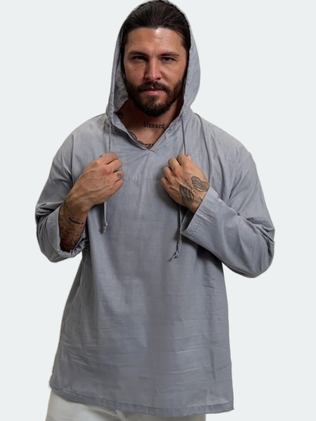 Мужская рубашка с длинным рукавом и капюшоном -идеальный выбор для пляжного отдыха, прогулок по городу и других летних мероприятий. Изготовленная из высококачественного хлопка, она обеспечивает комфорт и мягкость даже в самые жаркие дни. Легкий и прочный материал делает эту сорочку незаменимой частью летнего гардероба, обеспечивая вам не только стильный внешний вид, но и удобство в носке. При правильном уходе мужская туника прослужит вам не один сезон, сохраняя первоначальный вид и качество. Модель с капюшоном придает рубашке особую изюминку и современный вид. Это не просто элемент дизайна, но и практичное решение, которое защитит вас от легкого дождя или ветра. Капюшон можно легко регулировать с помощью завязок, что добавляет дополнительный комфорт. Свободный крой и длинные рукава обеспечивают полную свободу движений, что делает этот лонгслив идеальным для активного отдыха, занятий спортом или просто для расслабляющих прогулок на свежем воздухе. Длинные рукава также защитят ваши руки от солнечных лучей, что особенно актуально в летний зной. Серый цвет с V-образным вырезом делает марлевку универсальной, позволяя сочетать с различными элементами гардероба. Эта рубашка может быть частью религиозной одежды для мужчин в некоторых культурах, что делает её еще более многофункциональной. Кроме того, модель доступна в больших размерах, что позволяет удовлетворить потребности каждого мужчины, включая подростков. Безупречный крой, отсутствие карманов и наличие капюшона с завязками придают особый шарм и делают майку невероятно стильным и модным предметом гардероба. Важным аспектом при выборе одежды на лето является не только внешний вид, но и комфорт. Выбирая мужскую рубашку с капюшоном вы получаете идеальное сочетание стиля, практичности и удобства. Порадуйте себя новой одеждой премиум качества или сделайте приятный подарок близким!