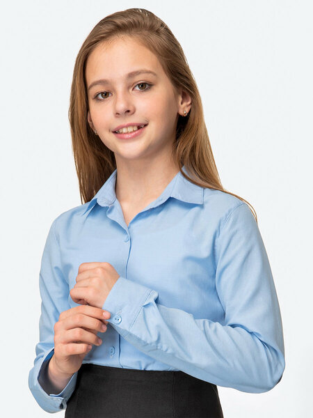 Базовая голубая детская рубашка для девочек и девочек-подростков выполнена из приятного к телу хлопка. Однотонная школьная блузка для детей не стесняет движений благодаря удобному приталенному крою. Аккуратный отложной воротник, классическая застежка на пуговицы и длинный рукав делают образ сдержанным и опрятным. Блуза выполнена из легкой ткани даркон, которая отлично пропускает воздух и позволяет телу дышать. Благодаря полиэстеру в составе рубашка отлично сохраняет форму после многократных стирок. Классическая рубашка на пуговицах дарит уют в течение всего дня благодаря свободному силуэту. Универсальная длина и скругленный край позволяют носить ее как заправленной, так и навыпуск. Благодаря длинному рукаву голубая блузка идеальна для прохладного лета, теплой осени и весны. Хлопковая рубашка станет идеальным дополнением школьной формы. Ее удобно носить не только в теплое время, но и зимой под свитер или пиджак. Подростковая нарядная блузка отлично подойдет для школы, повседневных осенних, весенних и летних прогулок, праздников и торжественных мероприятий. Рост модели 149 см, параметры: объем груди 76, объем талии 63, объем бедер 81 см. На ней рубашка 152 размера.
