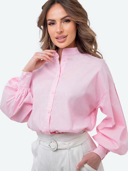 Элегантная, шикарная классика! Женская рубашка оверсайз выполнена из натурального хлопка. Воротник-стойка и интересный спущенный рукав-фонарик с изящными манжетами выгодно выделяют рубашку для женщин среди других моделей. Благодаря свободному крою однотонная рубашка подходит женщинам с любым типом фигуры. Хлопковая дышащая ткань батист приятна к телу, а небольшое количество эластана в составе позволяет ткани слегка растягиваться и легко разглаживаться. Прямой крой не стесняет движения, в рубашке будет комфортно в течение всего дня. Универсальная длина позволяет носить ее как в заправленном виде, так и навыпуск. Стильная рубашка гармонично смотрится как в многослойном образе, так и как самостоятельный элемент. Розовая рубашка с красивым рукавом станет изюминкой любого образа, будет идеально смотреться как в офисе, так и на свидании. Женская блузка отлично сочетается с любым низом, подходит для учебы, работы и прогулок – в любой ситуации вы будете чувствовать себя женственно и уверенно. Рост модели 167 см, параметры: объем груди 88, объем талии 61, объем бедер 90 см. На ней рубашка 44 размера.