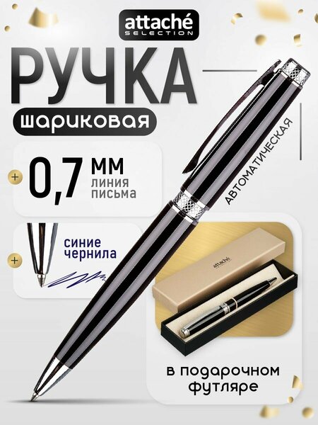 Подарочная шариковая ручка Attache Selection – прекрасный выбор для тех, кто ценит элегантность, надёжность и стиль. Она не только украсит ваш рабочий стол, но и подарит удовольствие от письма. Классический дизайн, прочность и безупречное исполнение делают эту стильную металлическую авторучку не только незаменимым аксессуаром для женщин и мужчин, но и верным компаньоном в повседневной жизни. Она отлично подходит для использования как в офисе, так и в повседневной жизни. С ней удобно подписывать документы, конспектировать важную информацию и просто продумывать разнообразные заметки. Автоматическая шариковая ручка обеспечивает мягкое и плавное письмо, не допуская размазывания чернил. Механизм ручки для письма – поворотный. Диаметр её пишущего узла – 0,8 мм, а толщина линии составляет 0,7 мм. Такая красивая ручка бизнес класса очень приятна на ощупь. Элегантный корпус выполнен из из металла и нержавеющей стали. Все элементы тщательно продуманы, чтобы подчеркнуть индивидуальность и статус владельца. Возможность нанесения логотипа делает её отличным вариантом для корпоративных подарков. Независимо от того, используете ли вы ее ежедневно на работе или для подписи важных документов, она дополнит любой мужской или женский деловой образ. Таким оригинальным и памятным подарком можно порадовать мужа, друга или парня на 23 февраля, а также вручить любимой жене, сестре или подруге на 8 марта. А еще можно преподнести такой бизнес подарок в знак уважения и внимания директору, классному руководителю или учителю. Даже самые взыскательные ценители письменных принадлежностей оценят его по достоинству.