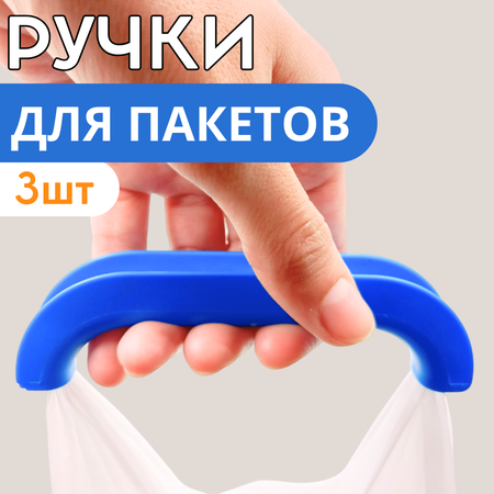 Ручка для переноса пакетов, набор 3 шт, прочный пластик, цвет в ассортименте
