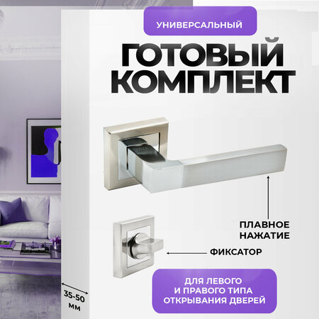 Комплект дверных ручек Loid для деревянных межкомнатных и металлических входных дверей, толщина полотна при этом должна составлять от 35 до 50 мм. Дверные ручки в комплекте универсальные, подходят на левые и правые двери. Отличительные особенности дверной фурнитуры – износоустойчивое и прочное покрытие, надежный механизм, качественные материалы, уникальный дизайн, легкий монтаж. Изготовлена из сплавов ЦАМ (основание и декоративная часть розетки) и алюминия (сплав силумина и кремния, из которого изготовлена сама ручка), и покрыта многослойным гальваническим покрытием (6 слоев). Это позволяет устанавливать данную модель как на межкомнатные, так и на входные двери, в том числе металлические. Такое основание придает прочность и устойчивость к нагрузкам, а также защищено от коррозии. Пружинный механизм выполнен из закаленной стали в 3 витка, ресурс работы рассчитан на не менее 400 000 рабочих циклов. Стяжки для установки - в комплекте. Гарантия на продукцию - 1 год. Раздельная дверная межкомнатная врезная ручка на розетке — это нажимная ручка на круглом или квадратном основании. Такие ручки часто используются на деревянных межкомнатных (спальни, офисы и другие помещения) и сантехнических дверях (в ванную комнату и туалет). Межкомнатные дверные ручки на раздельном основании подходят для основного большинства типов межкомнатных (немагнитных и магнитных) замков и дверных защелок с отверстием 8х8 мм под квадратный стержень. Накладки под фиксатор Loid высокого качества подходят для спален, санузлов, офисов и других помещений. Гальваническое покрытие - 6 слоев, включая двойной лаковый. В комплекте 2 накладки и крепеж, задняя часть с пазом для аварийного открывания (например, в санузле закрылся ребенок, с внешней стороны комнаты можно открыть отверткой, ножиком или любым похожим предметом).