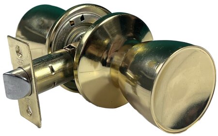 Ручка дверная универсальная(прав/лев), кноб с защелкой BUSSARE, для межкомнатных дверей, толщина полотна от 30 до 50 мм, Цвет: Полированное золото.