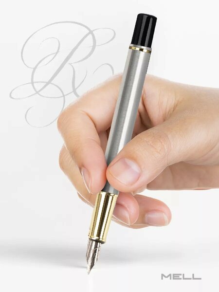 Эргономичная перьевая ручка для удобного письма. Толщина линии составляет 0,38 мм и является оптимальной для повседневного использования. Снабжена пером с иридиевым шариком, который обеспечивает тонкую линию письма. Перо нетребовательно к качеству бумаги: чернила не растекаются и не просвечивают даже тонких тетрадных листах. Писать этой ручкой легко и приятно, нажим не требуется. Кисть руки не затекает и не устаёт. Ручка перо MELL — это стильная и удобная перьевая ручка, которая не только порадует своего владельца, но и станет отличным подарком на любой праздник. Картридж с чернилами находится внутри корпуса. Способ применения: 1) Снимите с ручки колпачок, затем раскрутите ее корпус. 2) Вставьте картридж узким концом в ту часть ручки, на которой закреплено перо. 3) Надавите на картридж до щелчка, который возникает тогда, когда ниппель подачи чернил на перо протыкает картридж. 4) Подержите ручку в вертикальном положении, чтобы под силой тяжести чернила стекли к перу. Этот процесс может занять некоторое время. 5) Ручка готова к использованию. Поставляется в фирменной упаковке. Отличный подарок на любой праздник!